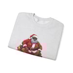 A cozy unisex crewneck sweatshirt featuring a black Santa surrounded by presents, perfect for adding a festive touch to your winter wardrobe. This sweatshirt is ideal for those looking for a comfortable and durable option for the colder months. It is relevant for holiday celebrations and winter festivities, appealing to those who enjoy unique and festive clothing items.