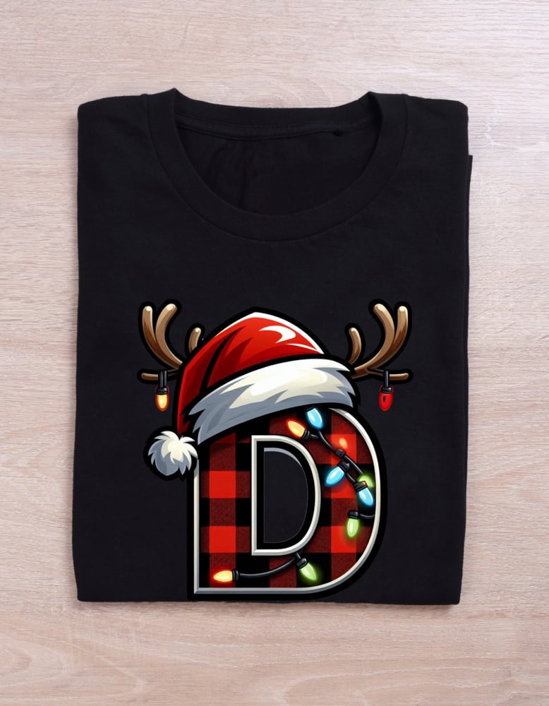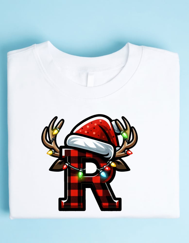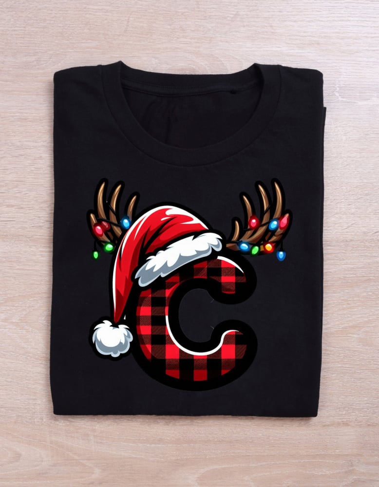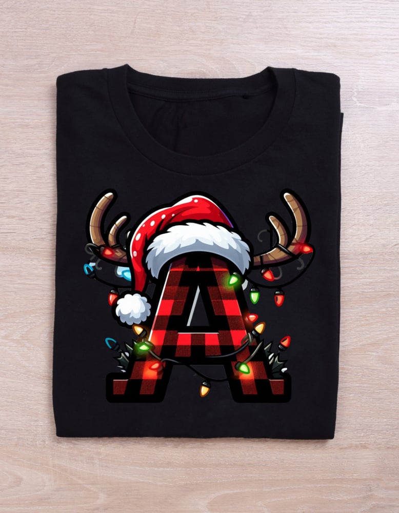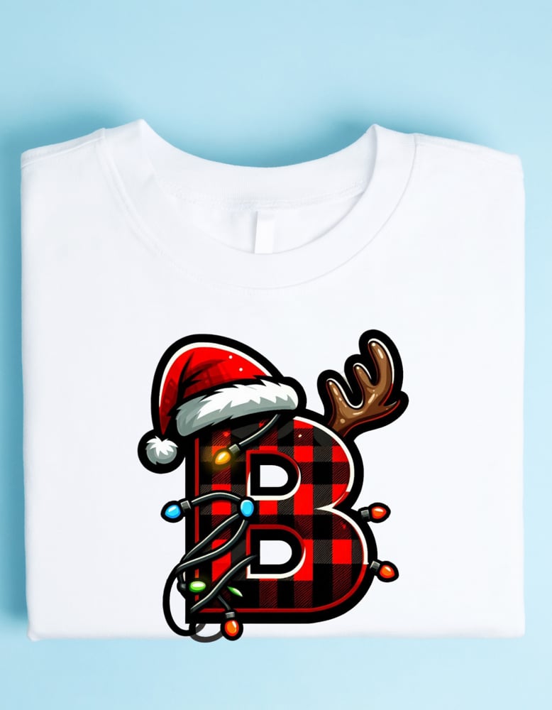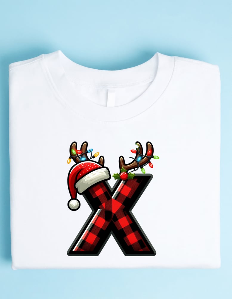 Celebrate the festive season with our unique and stylish Christmas Alphabet Shirts, perfect for adding a personal touch to your holiday wardrobe! Each shirt features one letter from the alphabet, creatively designed with a bold black and red plaid pattern and adorned with charming antlers on top. Whether you're looking to represent your initial, spell out a holiday message, or create matching family outfits, these shirts are a delightful choice.