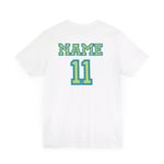 Custom Football T-Shirt featuring team name/ logo on the front with name and number on the back design. Perfect for proud football moms to show their support for their player. This versatile t-shirt can be worn to games, practices, or everyday wear. Ideal for Mother's Day, football season, games, and practices.