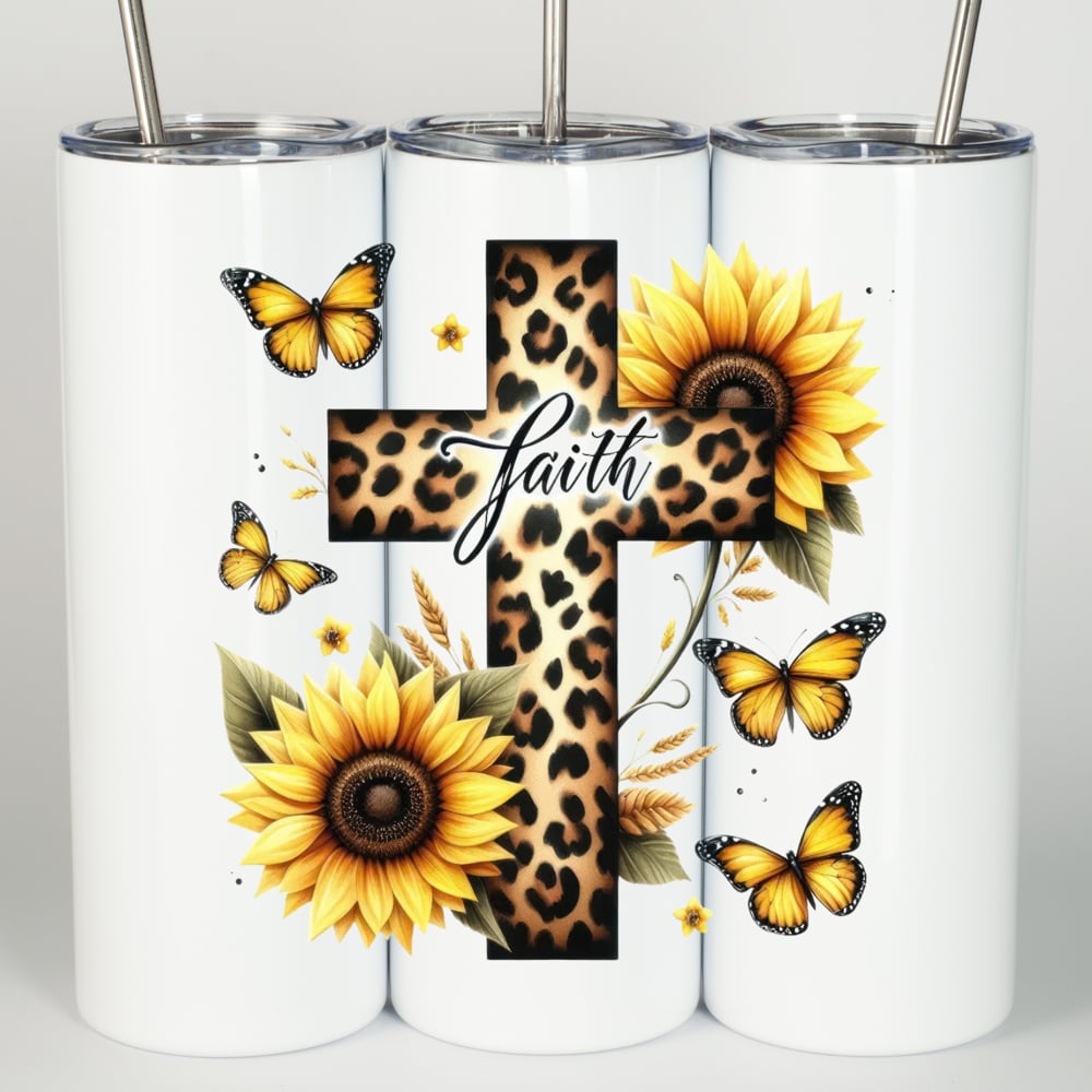 20 oz Tumbler: Faith with Cross and Sunflower