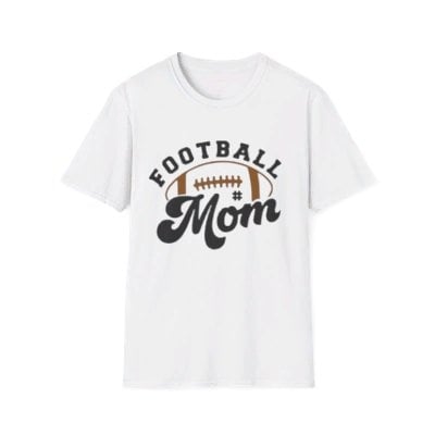 Custom Football Mom T-Shirt featuring a Football with a number inside the Football design and number on back. Perfect for proud football moms to show their support for their player. This versatile t-shirt can be worn to games, practices, or everyday wear. Ideal for Mother's Day, football season, games, and practices.
