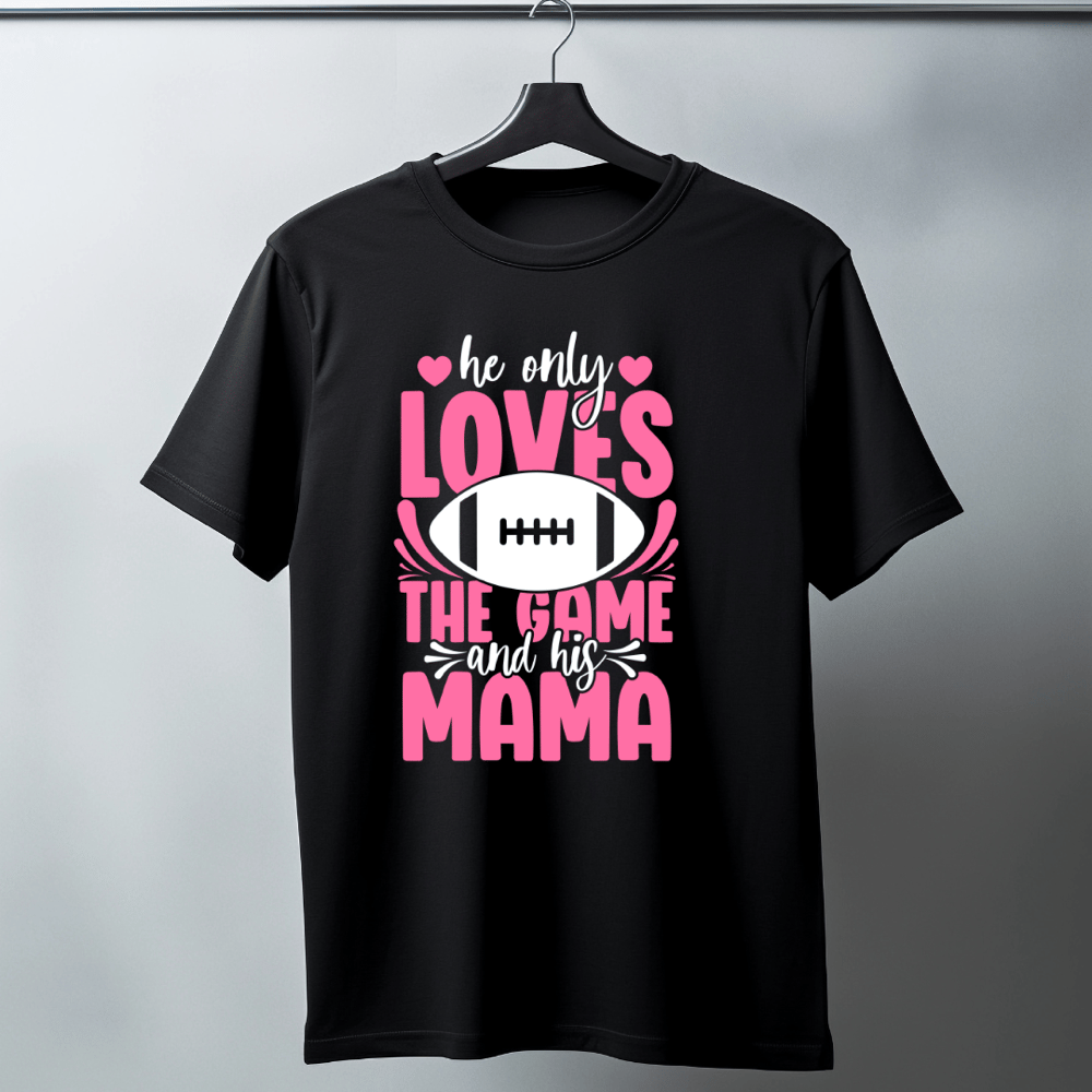 Crafted from high-quality, soft cotton, this t-shirt guarantees comfort and durability, making it ideal for game day or a casual day out. The bold, eye-catching print features a football icon alongside the witty and endearing statement, “He Only Loves the Game and His Mama,” capturing the essence of what truly matters.