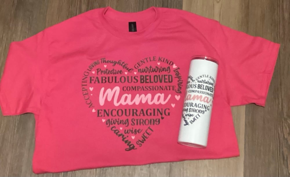 Introducing our exquisite 20oz stainless steel tumblers and shirt bundle, specially designed for Mother's Day. This bundle come with a shirt and a tumbler which is not just a functional beverage holder, but a heartfelt tribute to the incredible women in our lives. Each tumbler features a unique design where encouraging words about mothers are elegantly arranged in the shape of a heart.