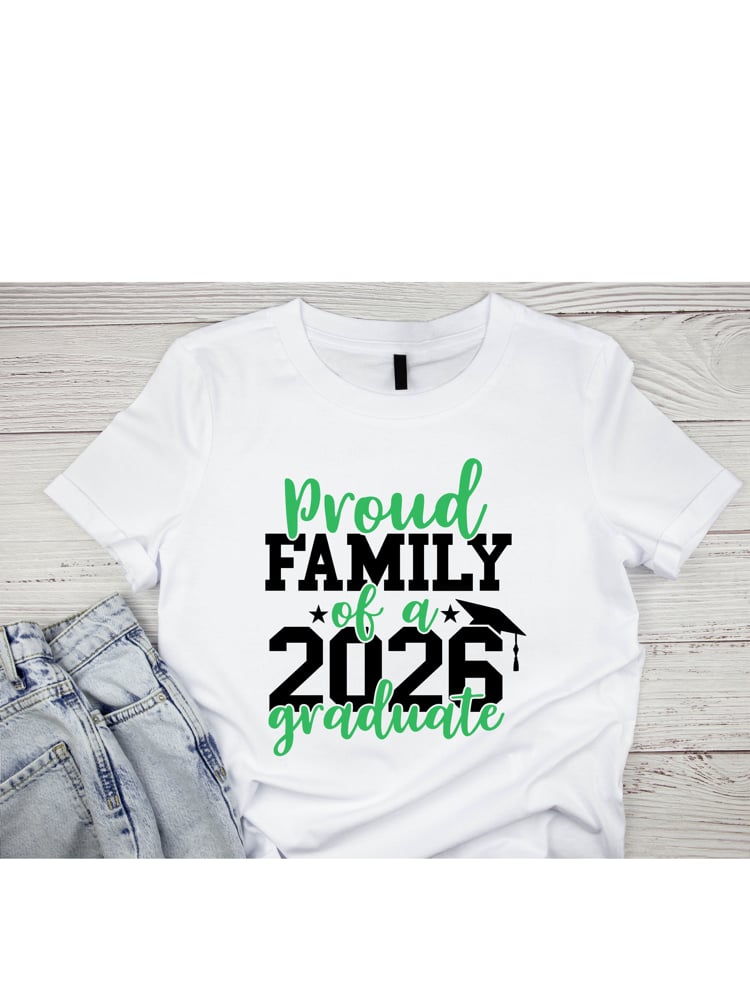 *Instructions: Select desired color and size for shirt add to cart and in the comments section at checkout add which design you would like. Example : Shirt choices: Red-10qty- medium- Design-Proud Family of a 2026 Graduate.