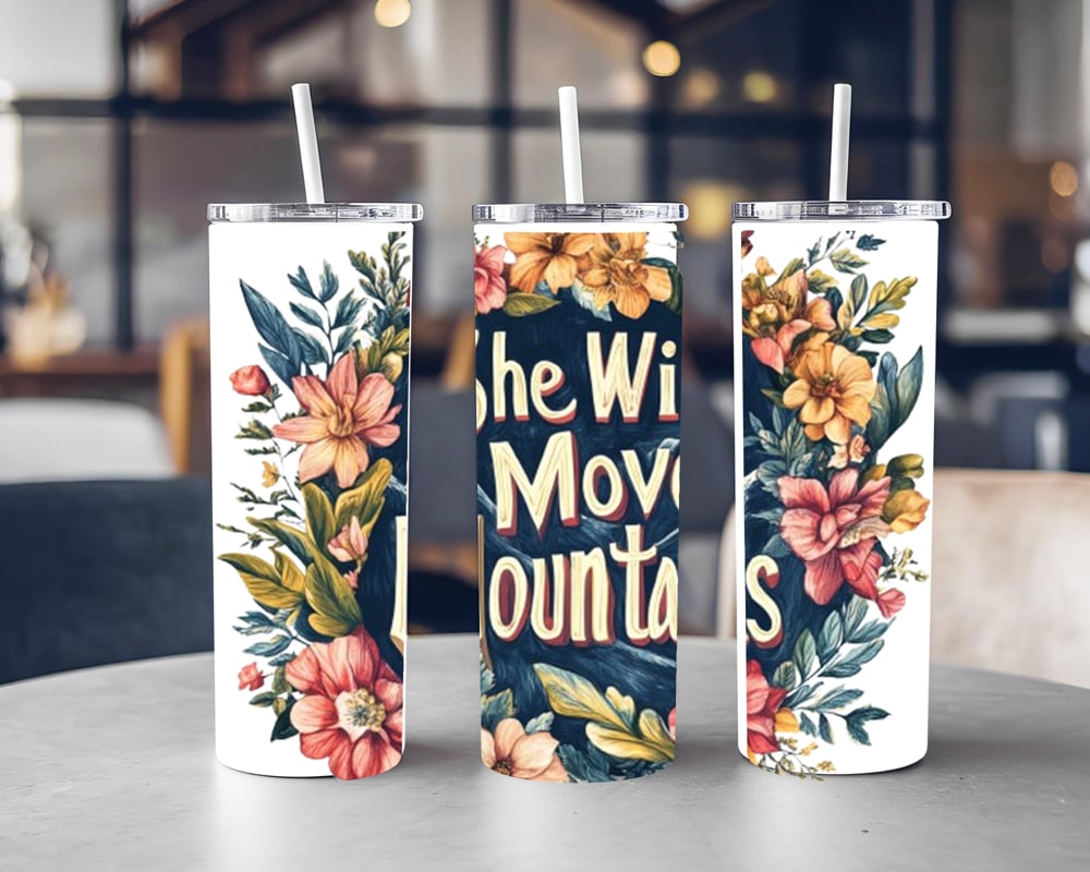 20oz Inspirational Tumbler – “She Will Move Mountains”