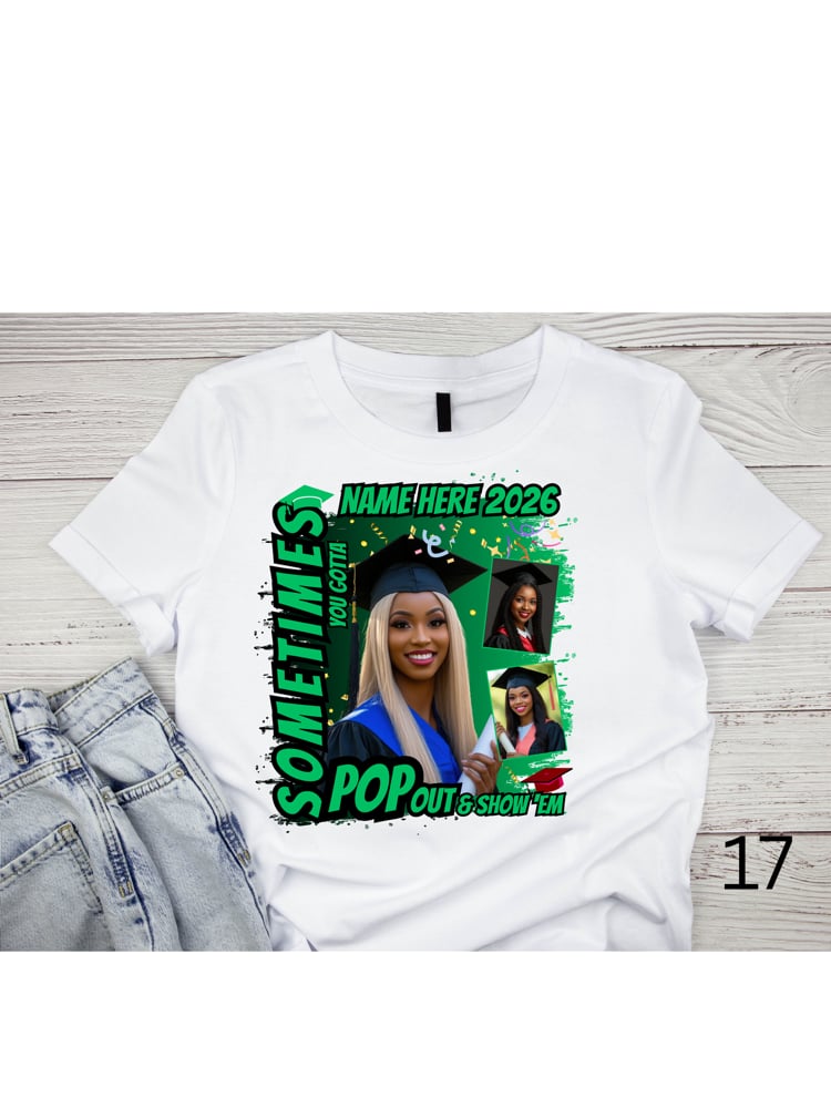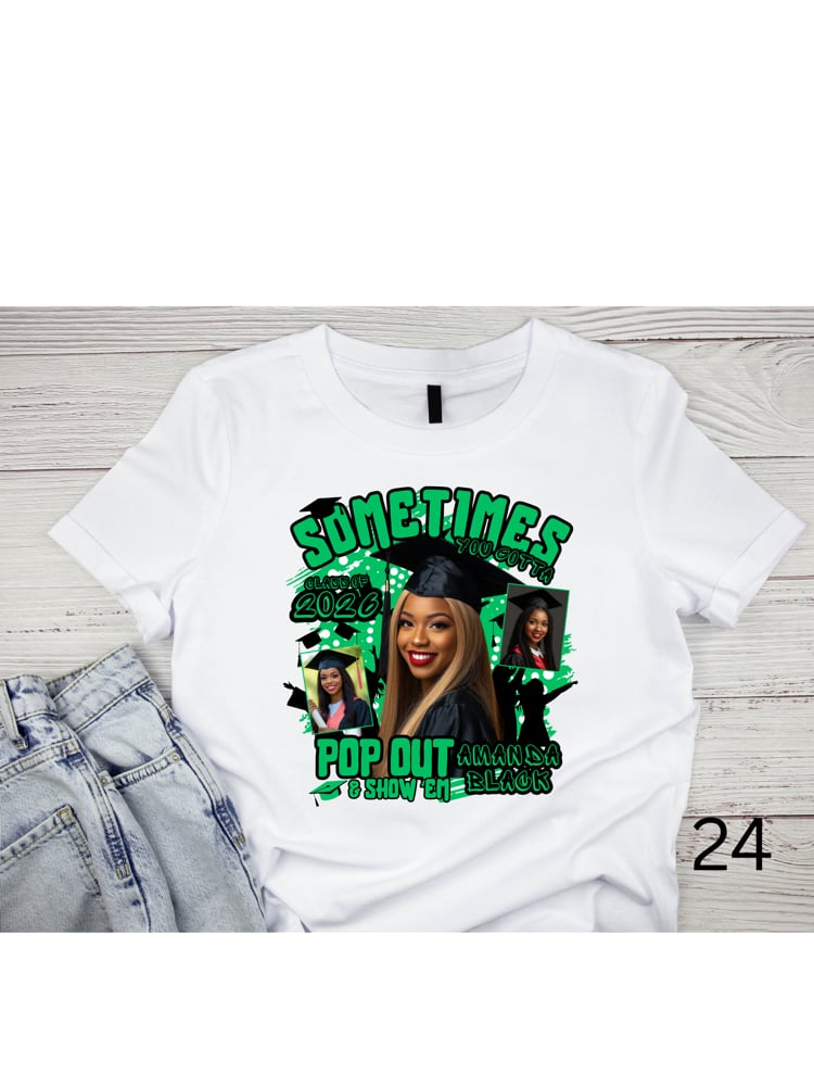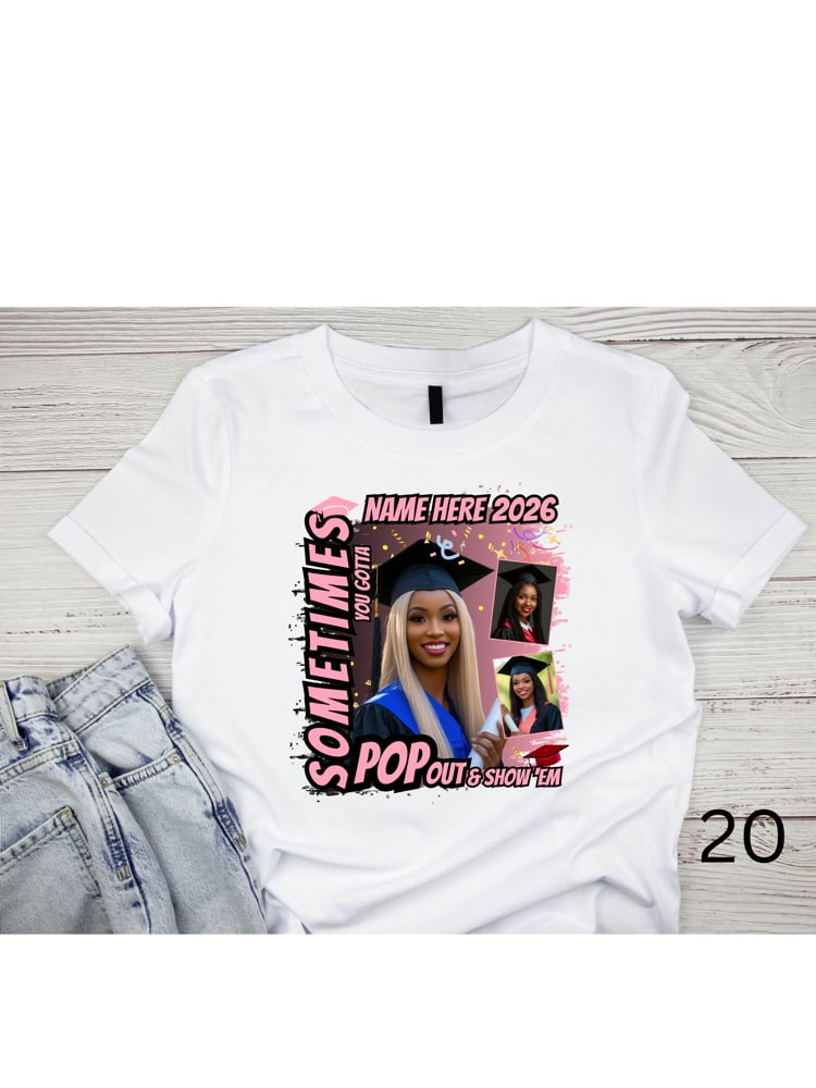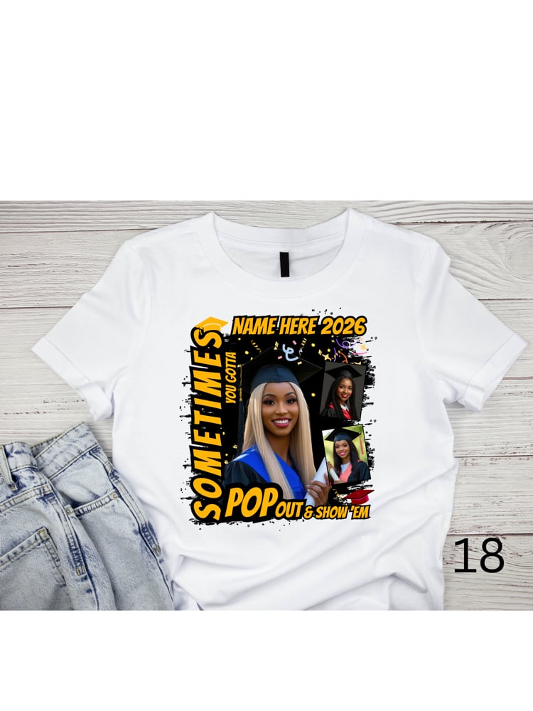 Celebrate your graduate in bold, unforgettable style with our “Sometimes You Gotta Pop Out and Show ‘Em” Custom Graduation Shirts! 🎓✨