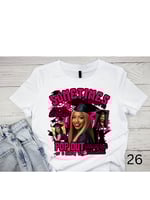 These eye-catching shirts are designed to make a statement and showcase your grad’s big moment. Personalize your shirt by adding your favorite photos, name, school, and graduation year to create a one-of-a-kind design that truly stands out.