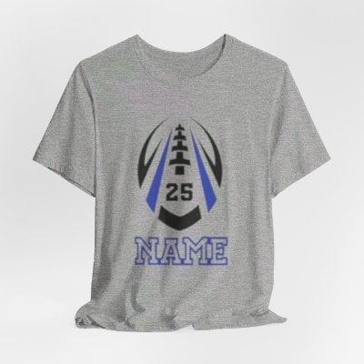 Introducing the ultimate customizable football shirt that puts you right in the game! This unique shirt features a bold, open football design on the front, allowing you to showcase your love for the sport. What's even better? The number on the football is fully customizable, so you can choose your favorite player's number, your own lucky number, or any number that holds special meaning to you. Made from high-quality, breathable fabric, this shirt is perfect for game days, workouts, or casual wear. Stand out from the crowd and represent your passion for football with a personal touch!